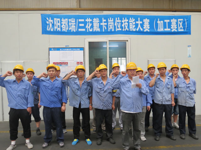 2012年8月29日,筹划已久的员工岗位技能大赛在三花戴卡加工车间办公室门口正式启动。公司工会主席付哲宣布员工岗位技能大赛启动仪式开始。