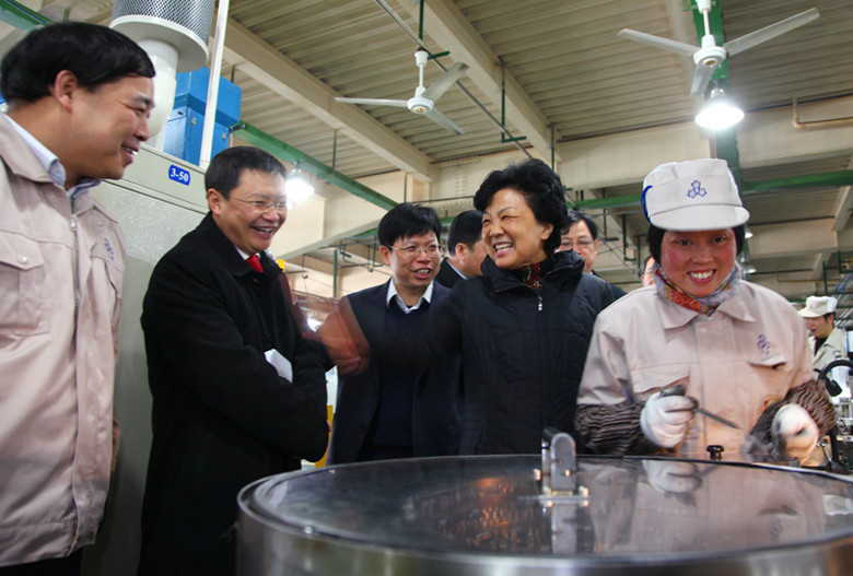 乔传秀主席十分关注企业的可持续发展。在三花控股集团新昌基地,乔传秀主席走进生产车间、研发中心,与一线工人、科研人员交谈,询问企业发展经营、困难问题和职工生产生活等情况。三花控股集团总裁张亚波、制冷产业集团总裁王大勇、副总裁陈雨忠以及三花股份行政总监丁伟洪等热情接待了乔传秀主席一行。