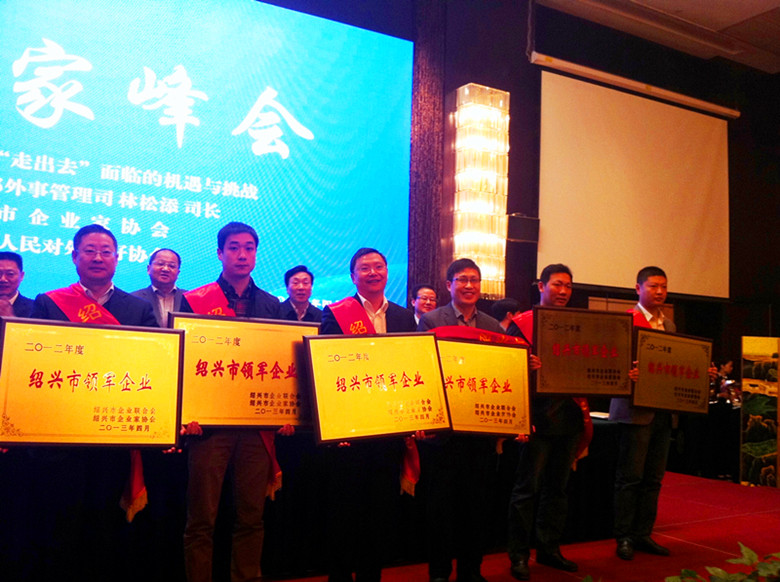 张亚波总裁代表公司出席了本次绍兴市企业家峰会,并从市领导手中接过领军企业奖牌匾额。