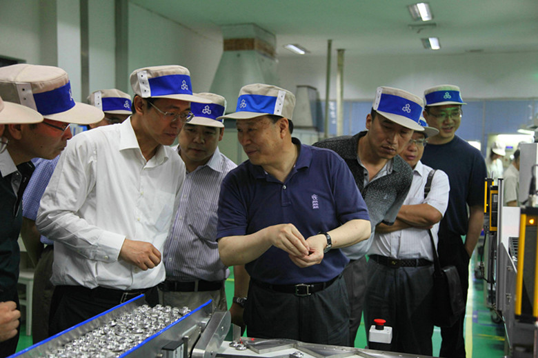 考察团首先来到三花集团产品陈列室,张道才主席向张华国副书记介绍了三花控股集团主营产品、行业地位。随后,到三花汽零公司金加工车间和装配生产线参观。