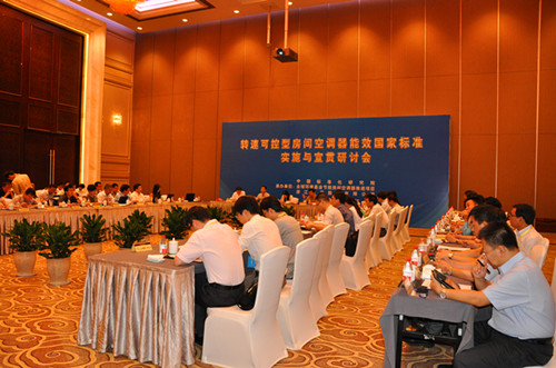 本次研讨会围绕转速可控型房间空调器(以下简称变频空调)能效标准和标识的实施与宣贯、能效APF计算方法与程序工具、标识中能效测试方法与操作手册等内容展开,与会代表本着科学求实、认真负责、协调一致的原则,就新标准中能效的测算及具体实施等相关问题展开了热烈的讨论。