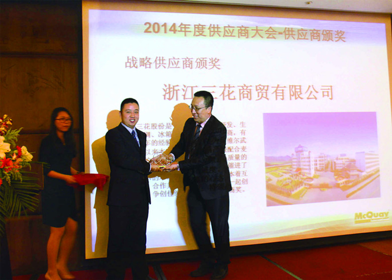 此次武汉麦克维尔将战略合作伙伴奖项颁发给三花,是对三花“生产、品质、服务”的肯定,特别是对三花研发技术力量的认可。我们要力求尽快超越丹弗斯,争取做到全球第一。战略客户华南所在今后的工作中一定秉承“三花作风”、“三花精神”更好的服务于客户,做到互利互惠、合作共赢,争取再创佳绩。